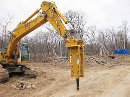 - XCMG с гидромолотом — специализированный экскаватор для разрушения твердых конструкций.